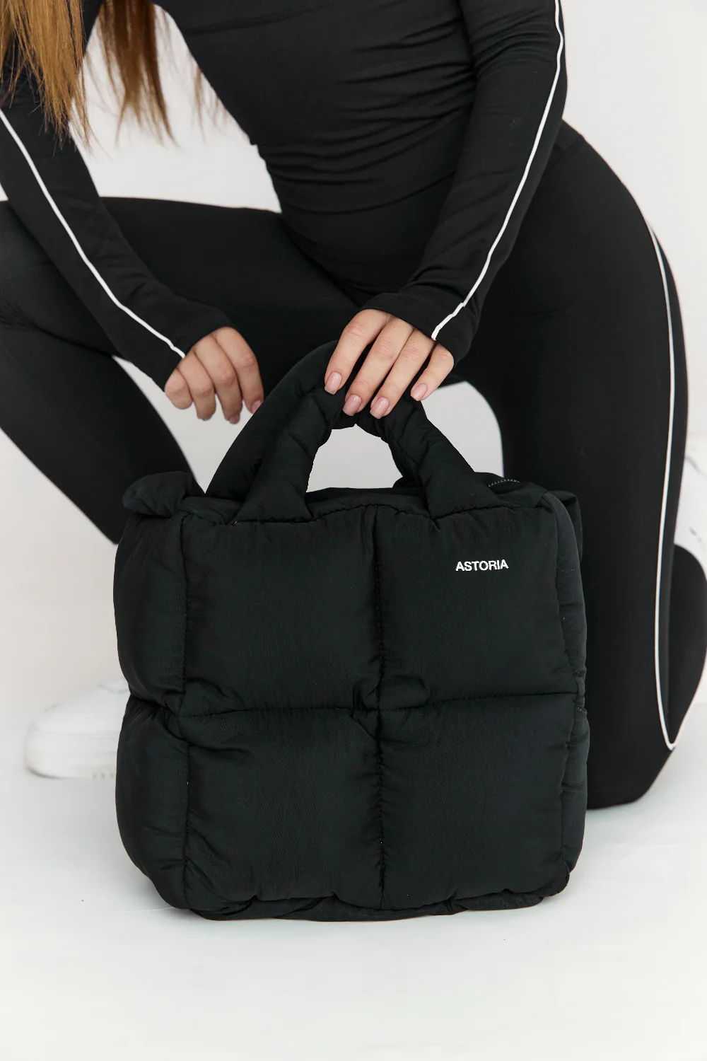 Soft yet structured, the Astoria Puffer Tote is the ultimate everyday companion. Its pillowy silhouette and quilted finish add a modern edge, while the spacious interior easily fits your essentialsāfrom gym gear to on-the-go musts. Designed with both short and long handle option for a sleek carry and subtle logo detailing for a minimalist finish.